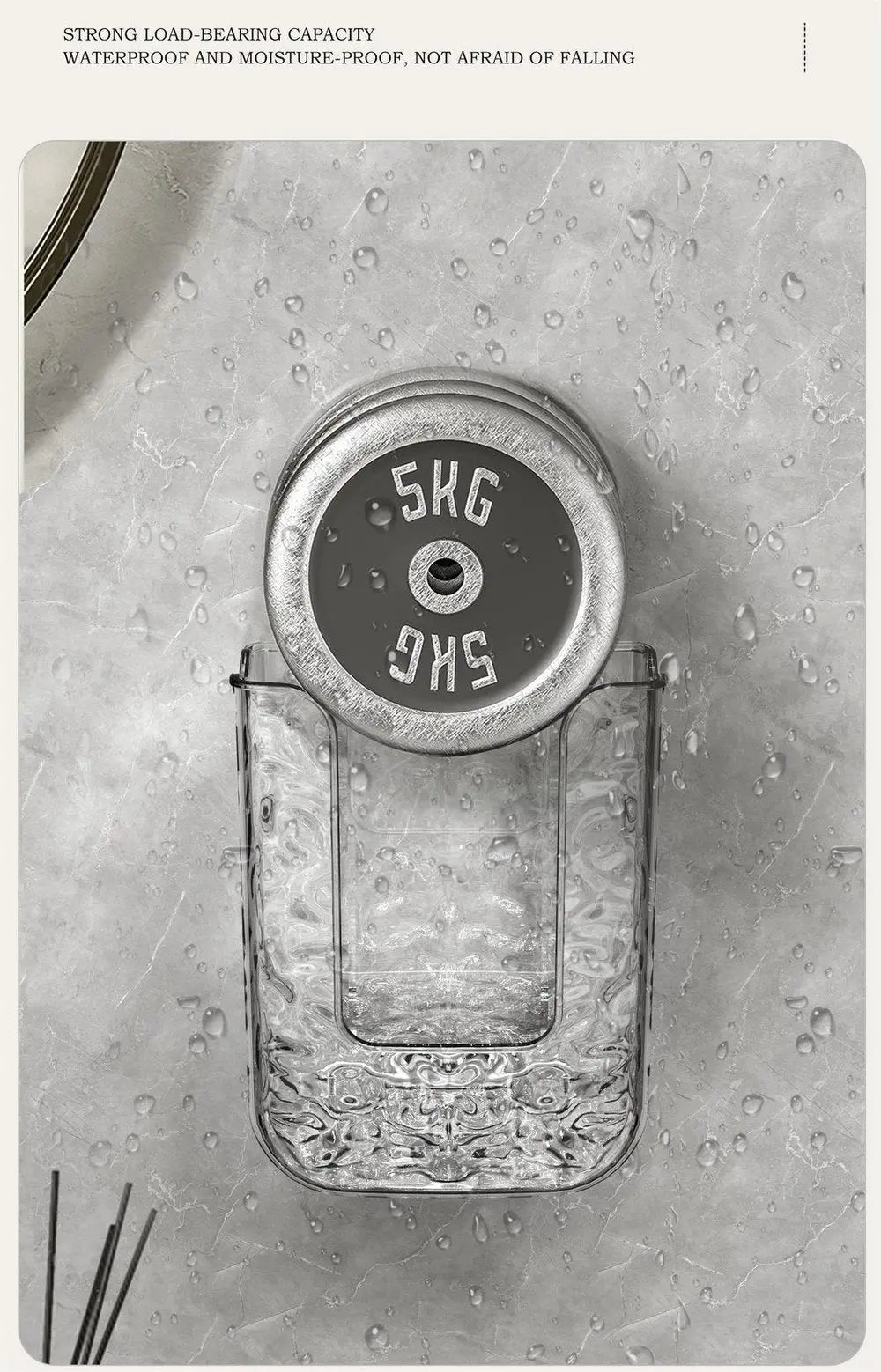 A: As long as the surface is smooth, clean, and non-porous, WallGrip Master’s suction cup snaps on with unbeatable grip to stay put through humidity and daily use.